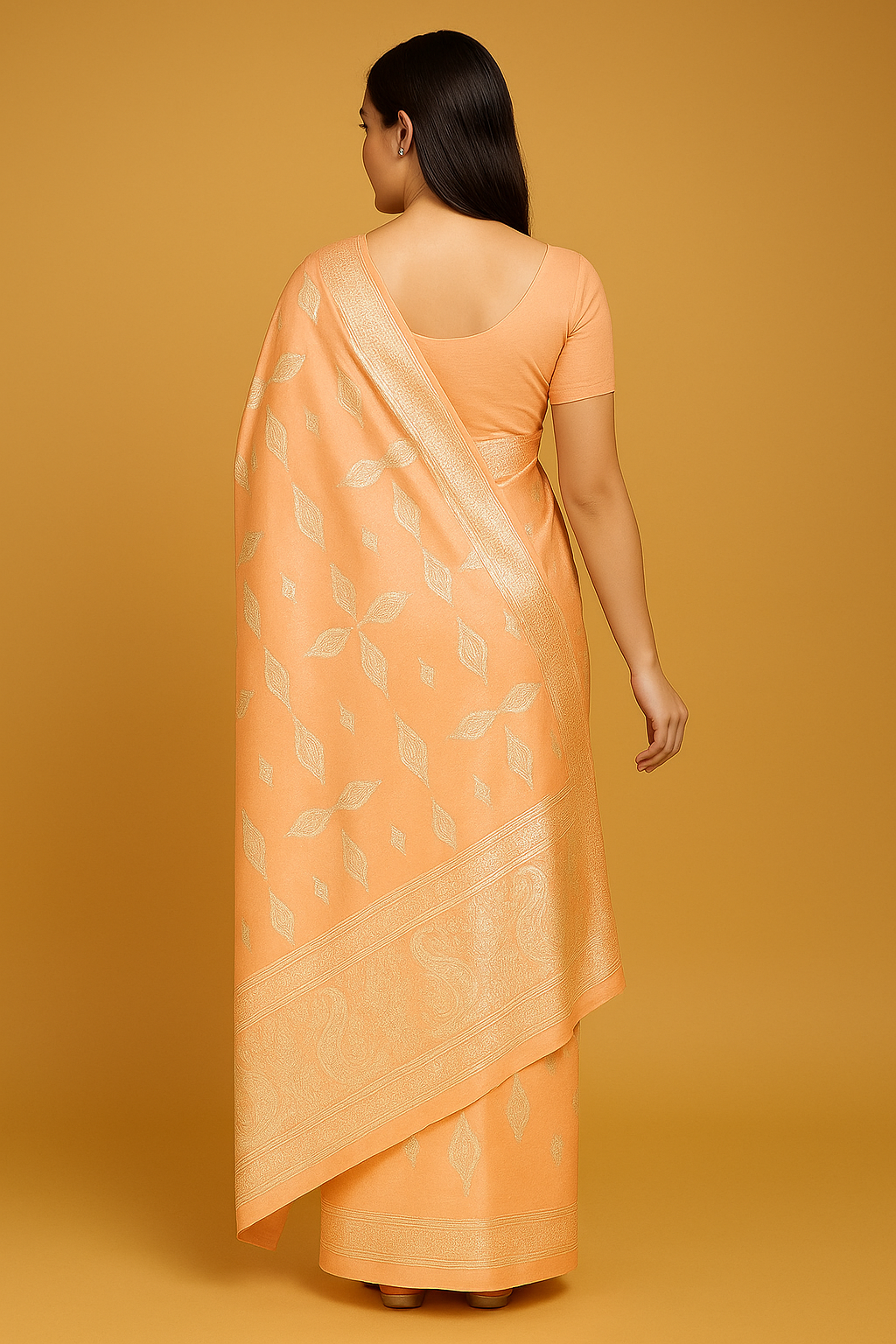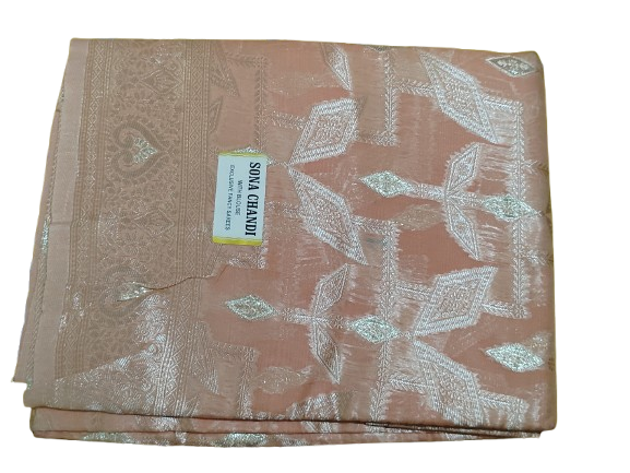 Be the first to review “Peach Soft Silk Saree With Silver Zari Design”